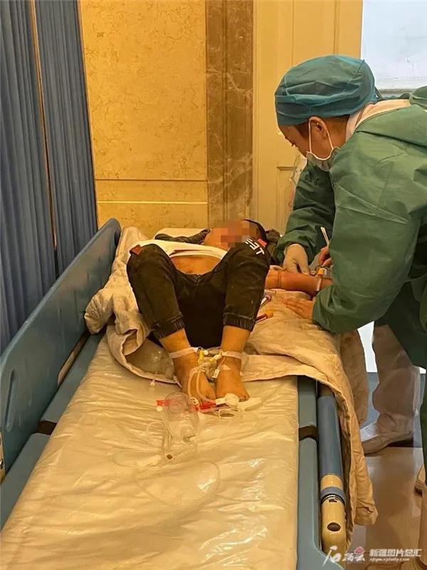 5月1日凌晨,新疆医科大学第五附属医院急救中心120随车医生曹洪民突然接到派车任务,前往机场转运这名孩子到新疆医科大学附属中医医院就诊。曹洪民在机场接到患者后,发现患者精神状态差,伤情很重,便立即监测患者生命体征,紧急输液,检查伤口包扎情况和离断肢保存情况,并不时呼叫患者,让他保持清醒状态。与此同时,他随时与新疆医科大学附属中医院保持联系,沟通患儿病情,告知到达医院时间,及时做好交接工作。