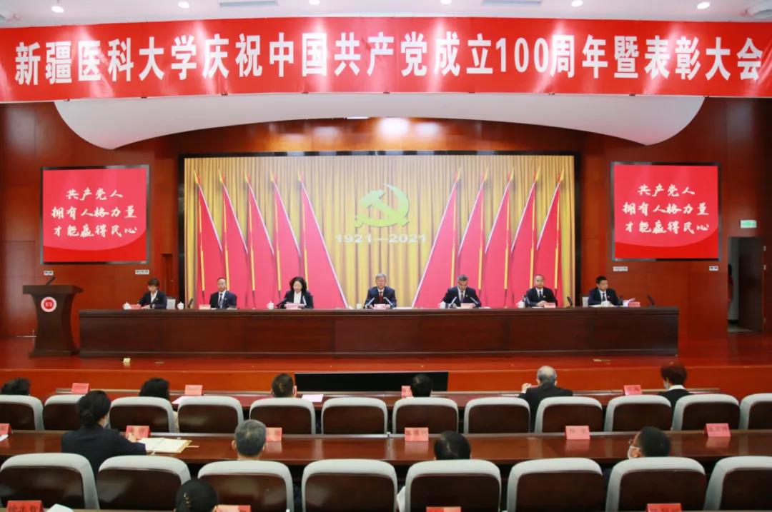 在喜迎中国共产党百年华诞之际,6月29日下午,新疆医科大学举行庆祝中国共产党成立100周年暨表彰大会,共同回顾中国共产党成立100年来波澜壮阔的光辉历程,共同祝福伟大的中国共产党带领中国人民迈进新征程走进新时代,表彰优秀共产党员、优秀党务工作者和先进基层党组织,动员全校各族师生医护人员更加充满信心和力量,朝着推动学校高质量内涵式发展、建设西部乃至全国一流医科大学的目标胜利前进。