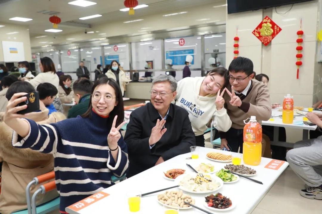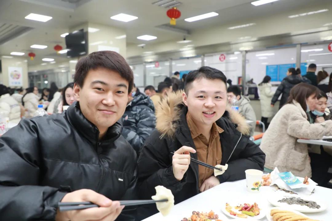 香喷喷的饺子端上了桌,暖融融的情谊溢满心间。第一临床医学院心血管内科的研究生吕华胜来自山东菏泽,吃着幸福的新年饺子,笑得合不拢嘴。他说,饺子的味道和家里的不相上下,“虽然因为实习没办法回家,但在学校有校领导、老师和同学一起过新年,更热闹更开心。”
