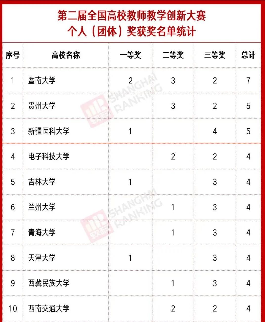 近日,在刚刚结束的第二届全国高校教师教学创新大赛中,我校共获得一等奖1项,三等奖4项,总成绩位居全国高校前列。