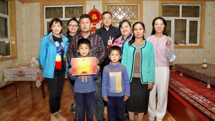 在托格拉克村阿卜杜海比尔·图尔荪尼亚孜家中,结亲干部们一边剥着核桃,一边教孩子们学习国家通用语言文字,阿卜杜海比尔·图尔荪尼亚孜说:“我会开大车,家里还加工核桃,在党和政府的关怀下,现在生活越来越好了,今年,我带着家人一起去了北京,看了天安门,感受到了祖国的伟大和崇高,感谢党的好政策,让我们结成了亲戚,让我们的心连在一起。”话音刚落,大儿子亚库甫·阿卜杜海比尔放学回来,自豪地举着“三好学生”奖状,兴奋地向大家展示。