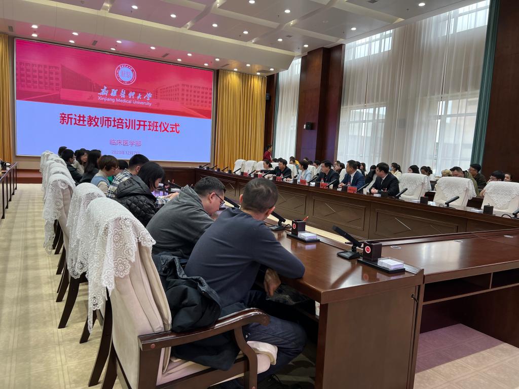 近日,新疆医科大学临床医学部举办2023年新进教师培训班开班仪式暨第一场培训,学院邀请到我校教学名师、第一临床医学院超声医学教研室主任穆玉明教授,教学名师、第一临床医学院外科学教研室居来提·安尼瓦尔副教授为新进教师做培训。我校教师发展中心、临床医学部相关负责人参加开班仪式。