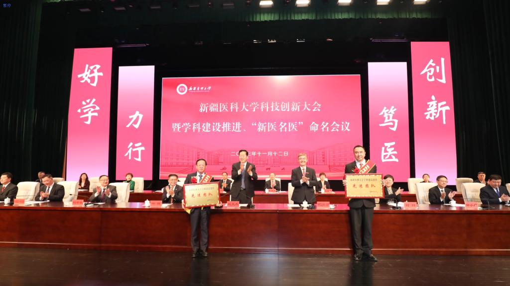 隆重召开新疆医科大学科技创新大会暨学科建设推进会,首次设立学科建设进位先进团队奖。