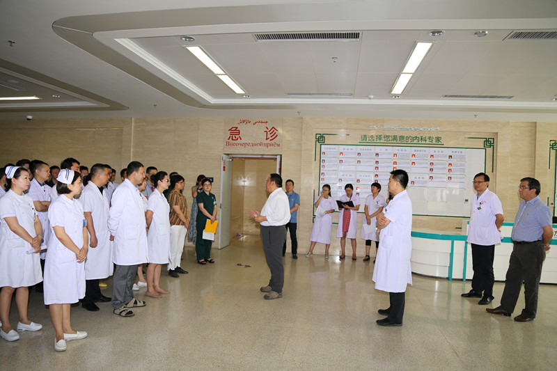 为强化三级医院评审内涵,全面提高处置突发事件的应急反应能力和组织协调、有效处置、协同作战的能力,新疆医科大学第六附属医院近日组织应急管理领导小组、应急办、医务部、护理部、急诊科、宣传科、医学工程科、药学部、后勤管理科、保卫科、病友综合服务中心、住院处、总值班等十余个部门、一百余人进行了“联合应急实战演练”。