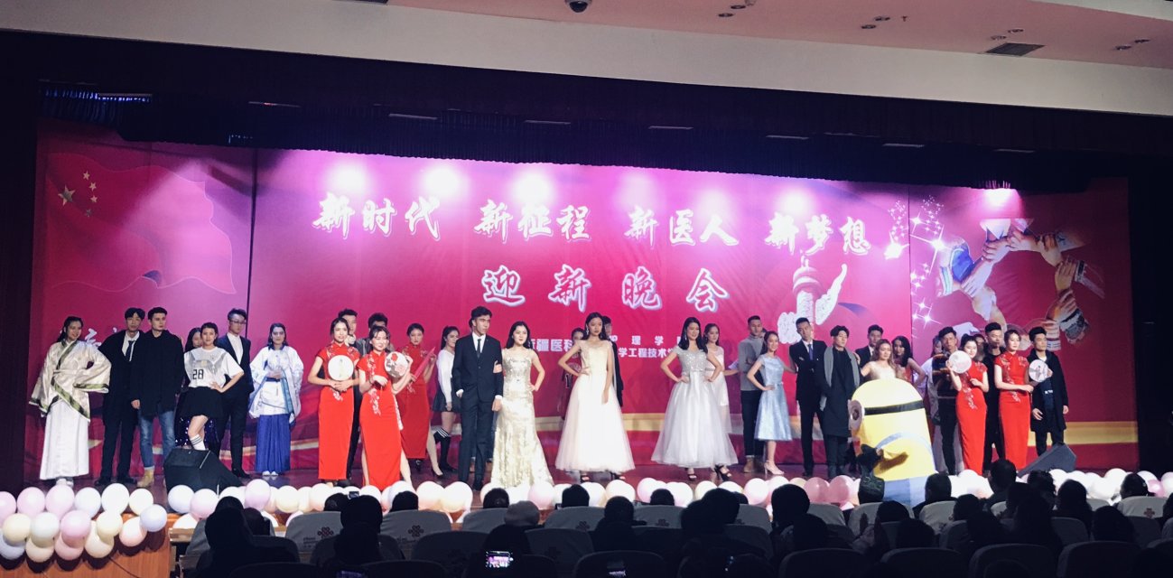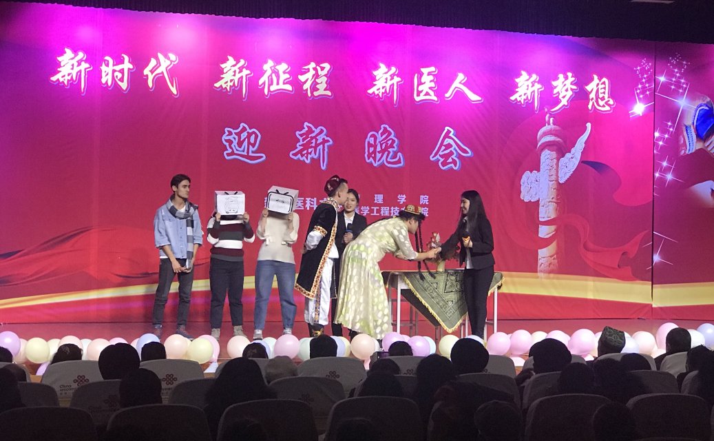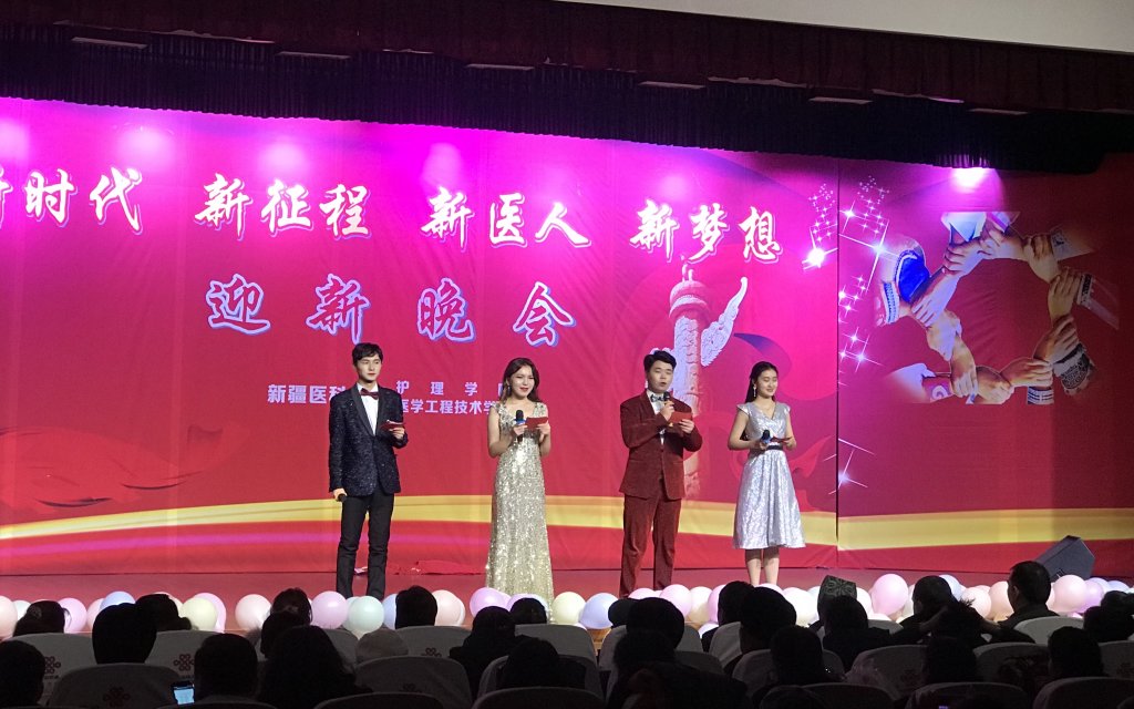 为迎接2018级新生的到来,展现两院学子风采,护理学院与医学工程技术学院联合举办的“新时代 新征程 新医人 新梦想”2018级主题迎新晚会于11月16日晚在800人会场隆重举行。晚会还特别邀请了45名和田结亲的亲戚们及结亲干部、校职能处室领导、两院三进两联一交友师生以及兄弟学院团委共900余人观看了演出。