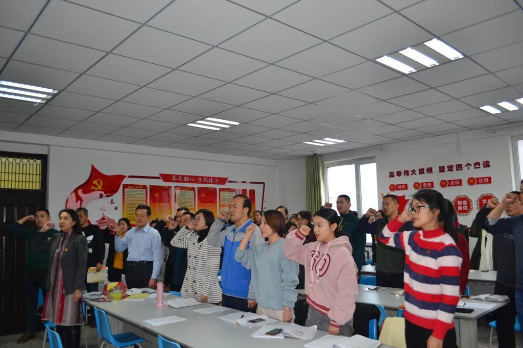 活动由诵党章、入党宣誓、话使命、谈心得、书记总结讲评五个环节组成。在诵党章环节,全体党员重读了党章,在诵读中深化了使命感和职责意识,牢固树立党员服务宗旨,增强服务意识。活动中,肖潇、李禹锐两位新入党同志在党旗下宣誓,围绕担负职责使命,开展表态发言。同时,全体老党员同志再次重温了入党誓词,并有三位优秀老党员以“如何发挥先锋模范作用”为题,联系当前工作谈了心得。最后,党总支李桂红书记对本次主题党日活动做了总结和讲评。