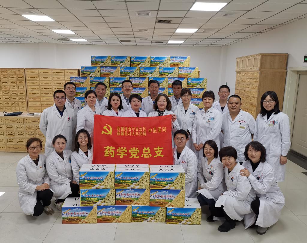 2018年,和田地区墨玉县奎牙镇光明村有644户2604人,其中建档立卡贫困户344户1617人,还是深度贫困村。在驻村工作队的帮助下,经过科学、规范管理农业生产各个环节,2019年11月光明村的核桃丰收了,但是市场收购价却普遍偏低,销路问题难坏了村民们。新疆医科大学附属中医医院药学党支部与光明村扶贫专干工作人员取得联系后,便在支部党员大会上向大家介绍了光明村的情况。“我们可以自己买,也可以介绍亲友买。”“大家发一下朋友圈,动员身边人来买。”会上你一言我一语,为光明村的核桃销路出谋划策,所以才有了光明村村委会一片热闹景象。