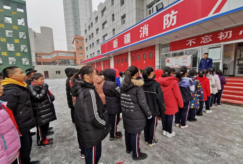 11月21日,新疆医科大学附属中学七、八年级共176名学生在大学保卫处消防部门的协助下,组织师生参观了新市区救援中队,聆听了消防知识教育培训。