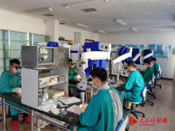 “学员把一天当两天在学习。”这是培训中心教员们经常说的一句话,因为大部分学员是在新疆医科大学第一附属医院进修的基层医生,他们要正常上班,又不能耽误培训,就利用休息时间加班加点训练,“学员平均每天训练6-8小时,这不仅考验医生的技术,还考验医生的耐力,成功吻合比头发丝还细小的血管,修复损伤的神经、肌腱等,‘绣工’必须扎实精细,这样才能在显微镜下得心应手。”新疆医科大学第一附属医院显微外科技能培训中心主任艾合买提江·玉素甫说。