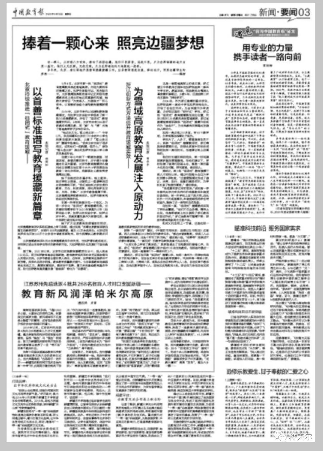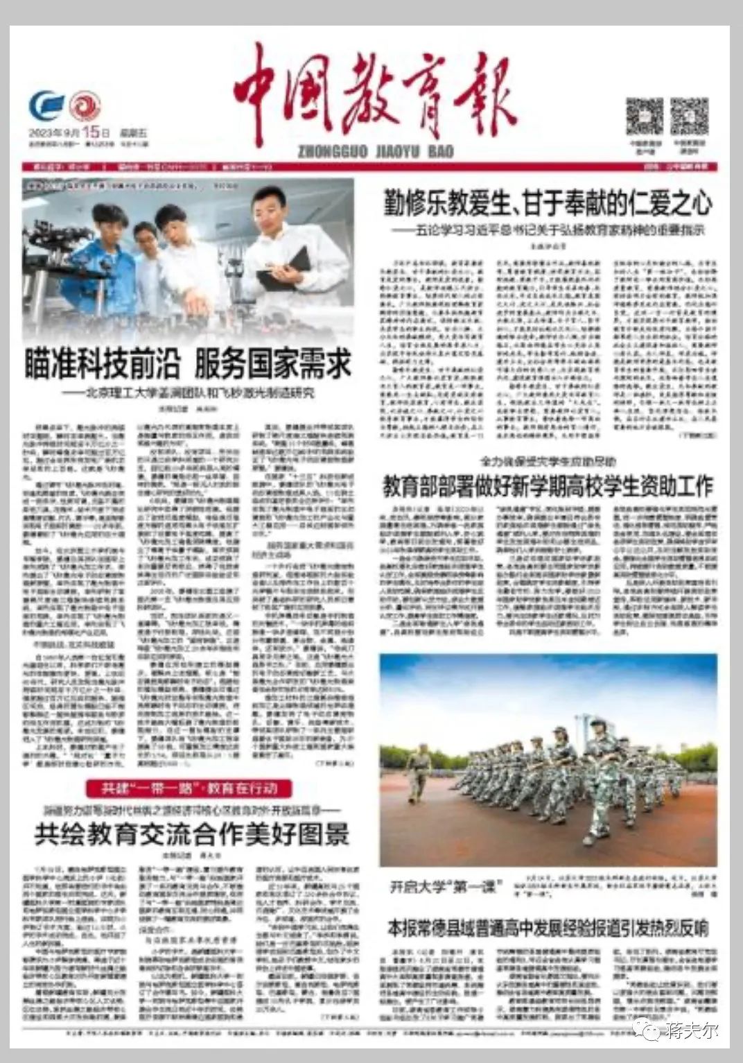 今天出版的《中国教育报》刊登文章《新疆努力谱写新时代丝绸之路经济带核心区教育对外开放新篇章——共绘教育交流合作美好图景》。文章中,围绕“一带一路”教育合作的话题,谈到了新疆医科大学及各附属医院充分发挥医学教育资源优势,与中亚国家开展深度合作,共享优质的医疗资源和医疗技术。