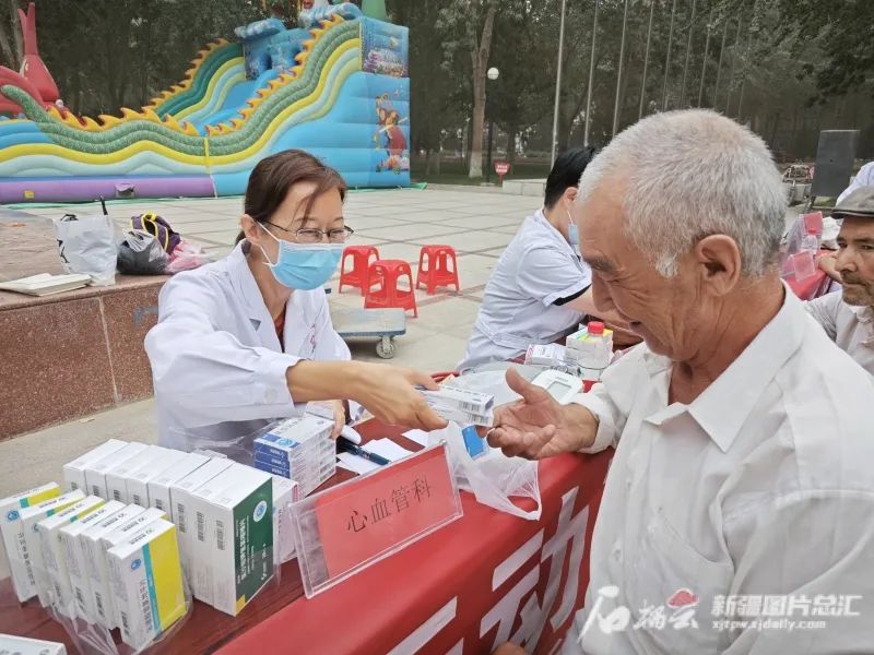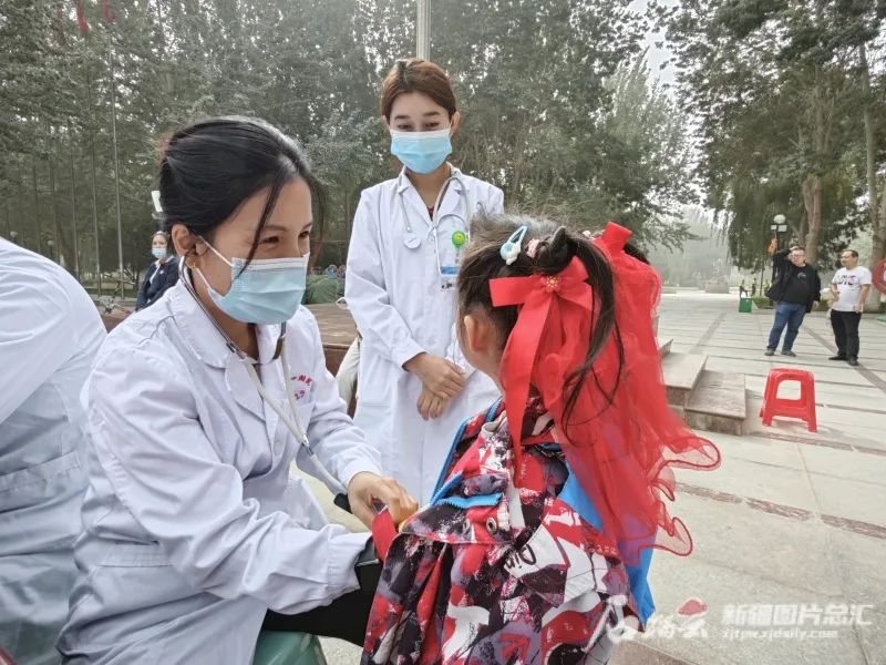 9月16日,由新疆医科大学第一附属医院、新疆医科大学第七附属医院、自治区妇幼保健院组成的医疗队在且末县义诊。石榴云/新疆日报记者苏璐萍 摄