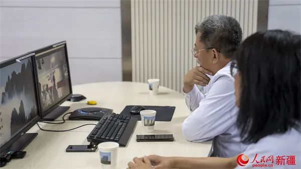 新疆医科大学第一附属医院专家团队与哈萨克斯坦国立科学研究中心的专家对伊女士进行跨国远程会诊。人民网记者 许峥摄