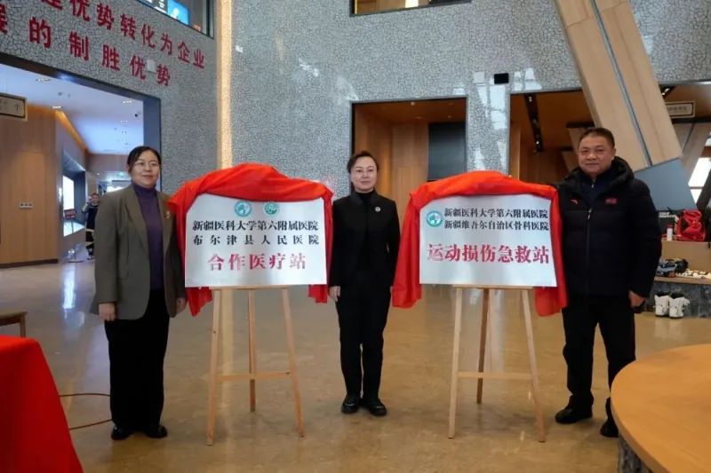 新疆医科大学第六附属医院(新疆维吾尔自治区骨科医院)运动损伤急救站及新疆医科大学第六附属医院—布尔津县人民医院合作医疗站揭牌现场