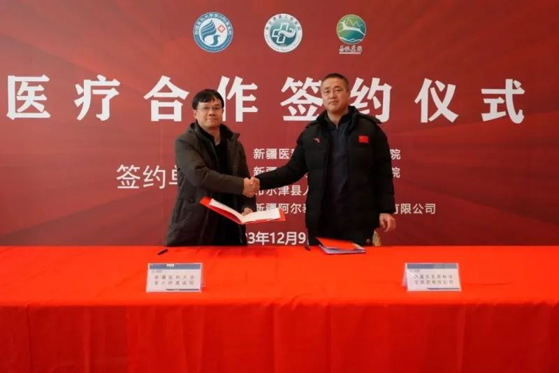 新疆医科大学第六附属医院李国华副院长与吉克普林国际滑雪度假区总经理王兰成签署合作协议