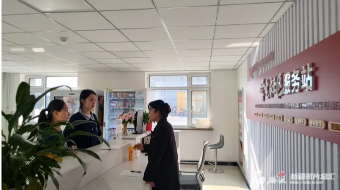 近日,新疆医科大学在学生公寓打造的13个学生社区服务站正式启用。3月25日21时,新疆医科大学中医学院2021级3班的孙开元来到位于宿舍楼一楼的社区服务站。他先是在自助机上充值买了水电,又向“石榴籽党员服务示范岗”值班的辅导员老师咨询了医保报销的相关政策,之后从自动借阅书柜里借了一本书。