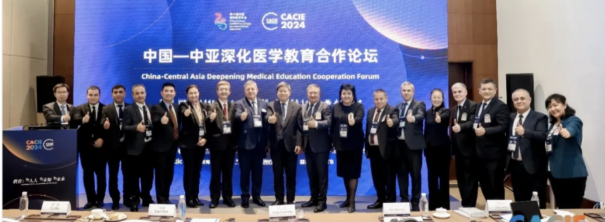 2024年11月1日,中国—中亚深化医学教育合作论坛在北京国家会议中心举行。本次论坛由中国教育国际交流协会主办,高等教育出版社和新疆医科大学承办,邀请中外教育专家、学者就中国—中亚医学教育的合作模式展开交流。