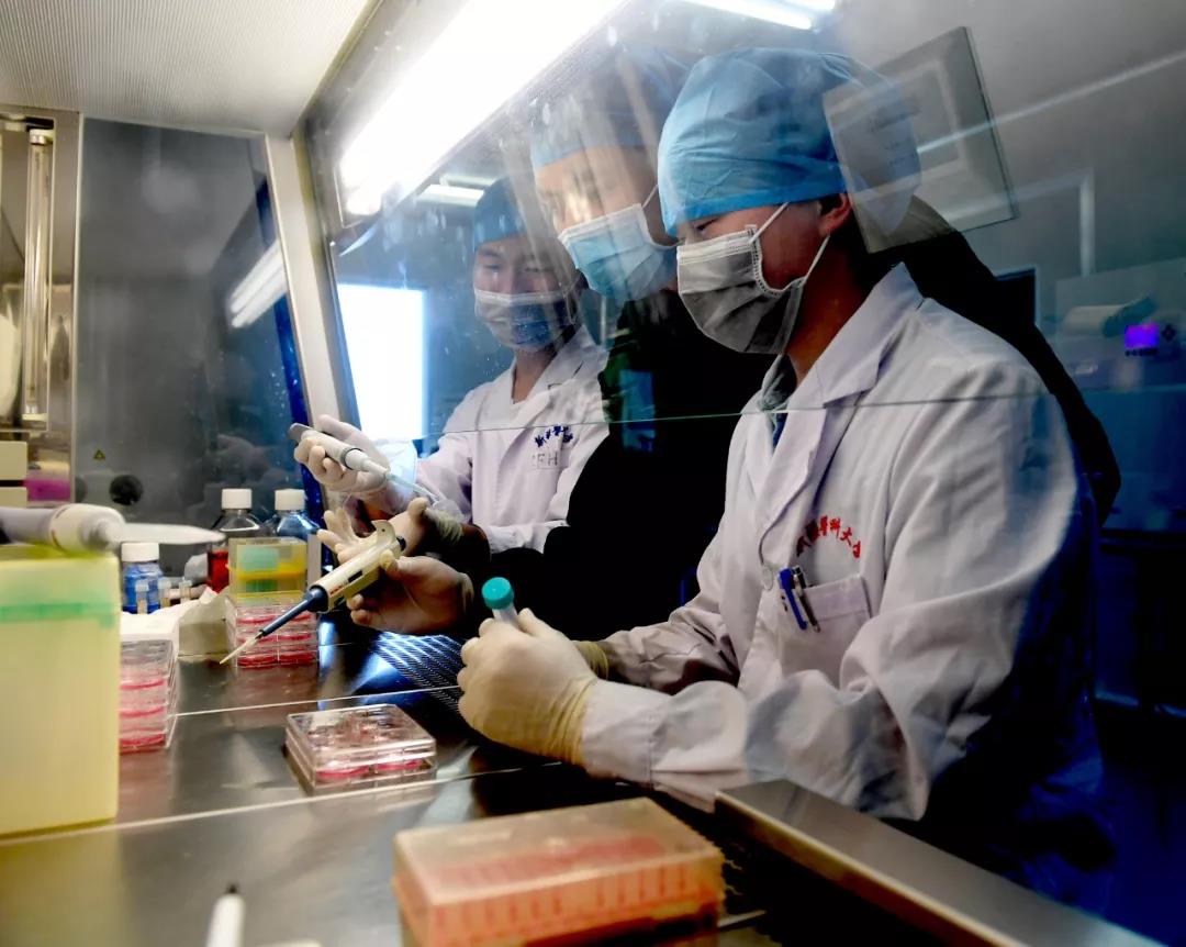 新疆医科大学学生在中心实验室生物安全柜内进行细胞培养实验。韩亮摄