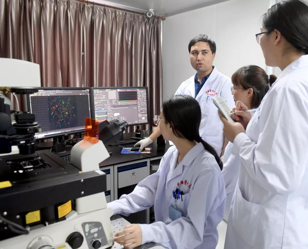 7月15日,新疆医科大学学生在中心实验室利用激光共聚焦显微镜做实验。韩亮摄