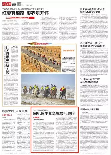 “他们从武汉回到单位,谁也没有提及飞机上救人的事,直到在朋友圈看到湖北当地媒体发的新闻后,同事才知道。”新医大五附院心内科医生麦麦提阿卜杜拉·麦麦提敏说。