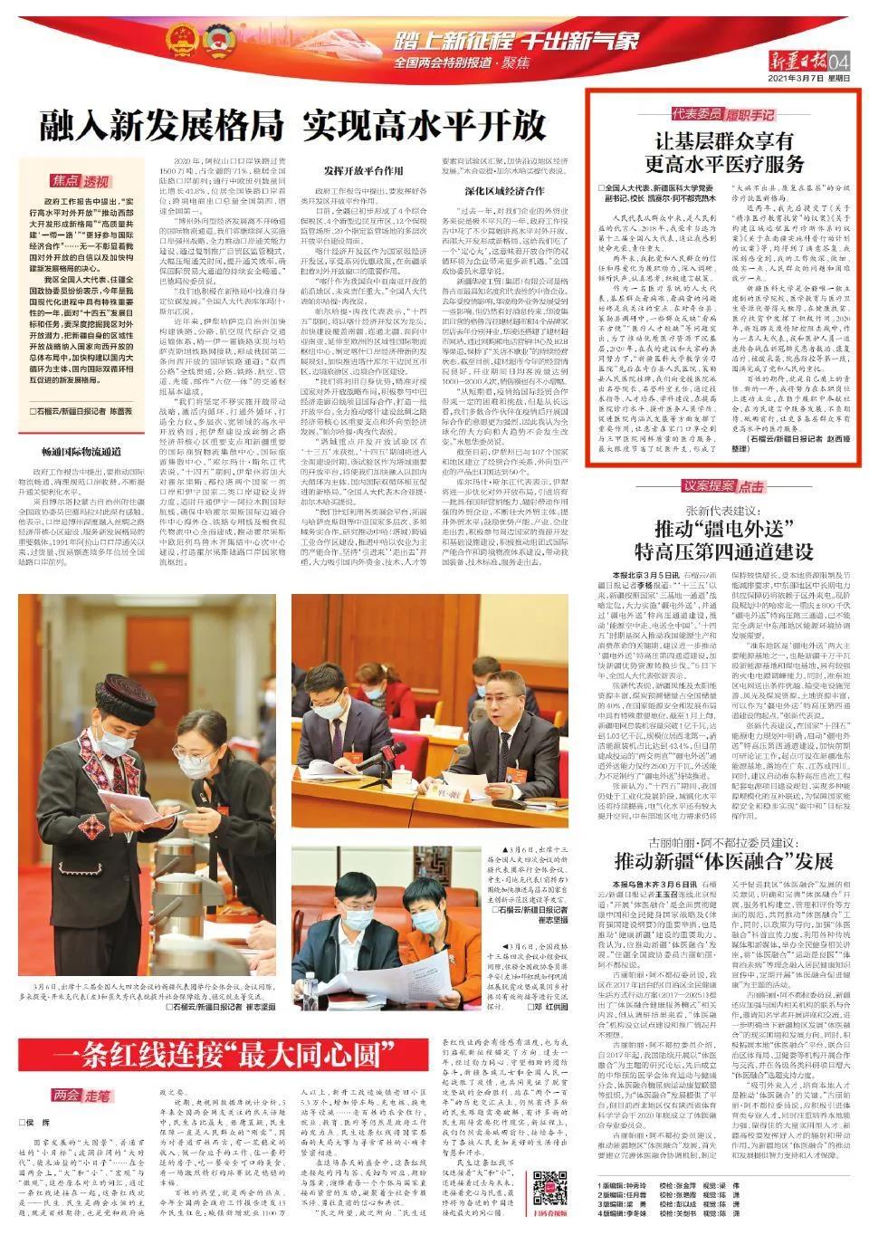 新疆医科大学是全疆唯一独立建制的医学院校,医学教育与医疗卫生资源优势得天独厚,在健康扶贫、医疗扶贫中发挥了积极作用。2020年,新冠肺炎疫情防控阻击战中,作为一名人大代表,我和医护人员一道连续奋战在新冠肺炎患者救治、康复治疗、核酸采集、院感防控等第一线,圆满完成了党和人民的重托。