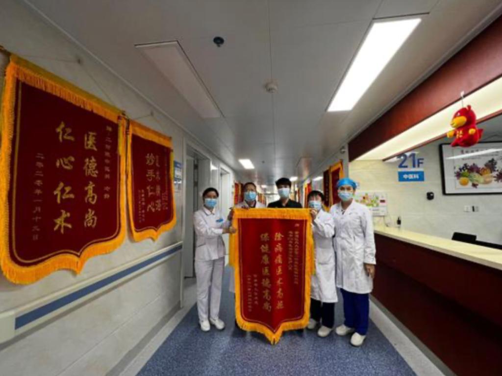 据患者家属万小平介绍,老人农历正月十五入院以来,几度经历了病危,我们很担心。看到老人目前的状态,还得真心感谢医护人员的悉心照顾。说话间,万小平将一副写有“除病痛医术高超 保健康医德高尚”的锦旗送给了该院参与救治的医护人员。