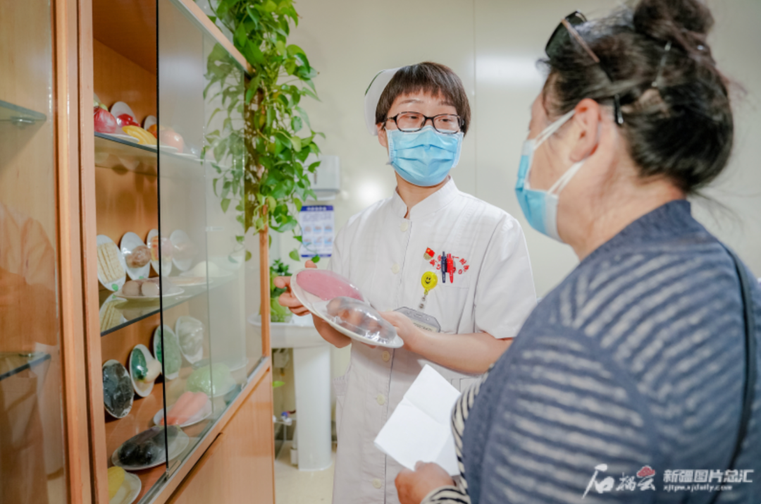 5月7日下午,新疆医科大学第一附属医院糖尿病护理门诊护士长徐静,向患者科普糖尿病人食谱,引导其培养健康生活方式,做好健康管理。石榴云/新疆日报记者 豆兴军摄