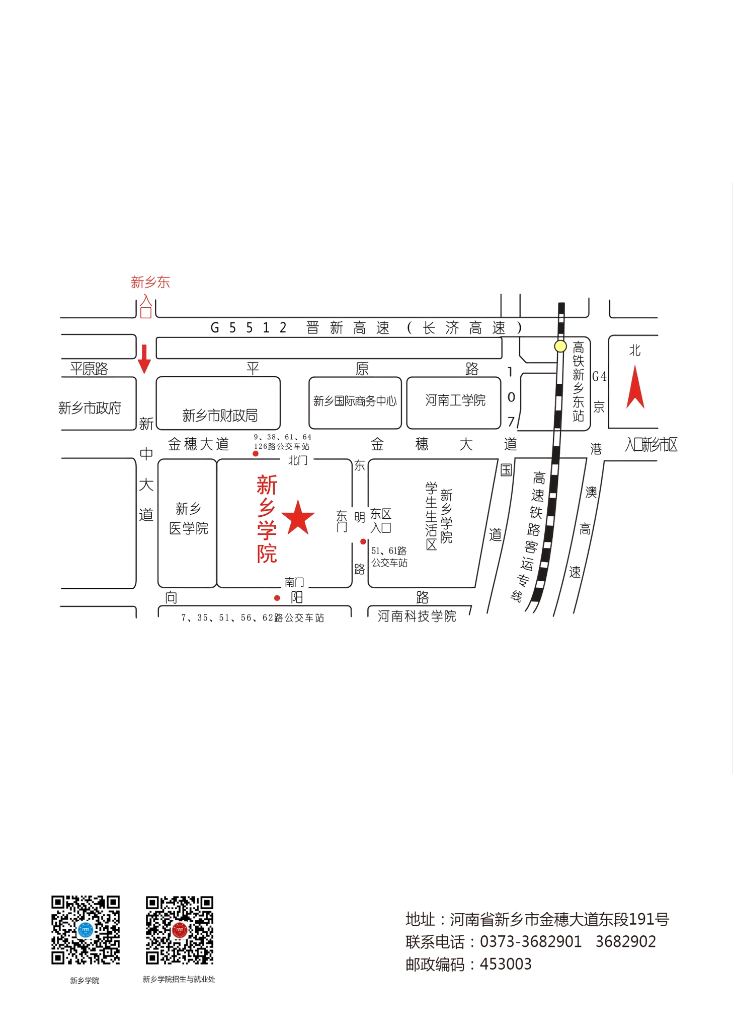 版权:招生与就业处 地址:新乡市金穗大道东段191号(图书馆南楼一楼东)联系电话:0373-3682901,3682902; 邮箱:xxxyzsb@163.com 邮编:453003