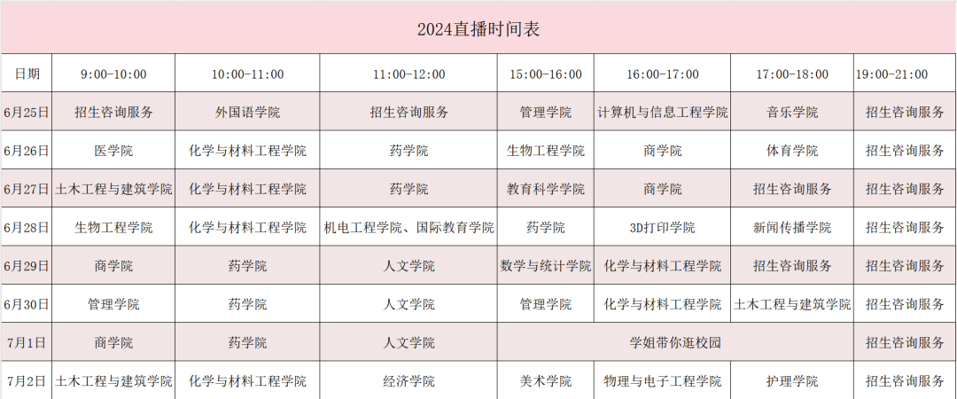 6月25日至7月2日:上午8:00—12:00,下午15:00—18:00