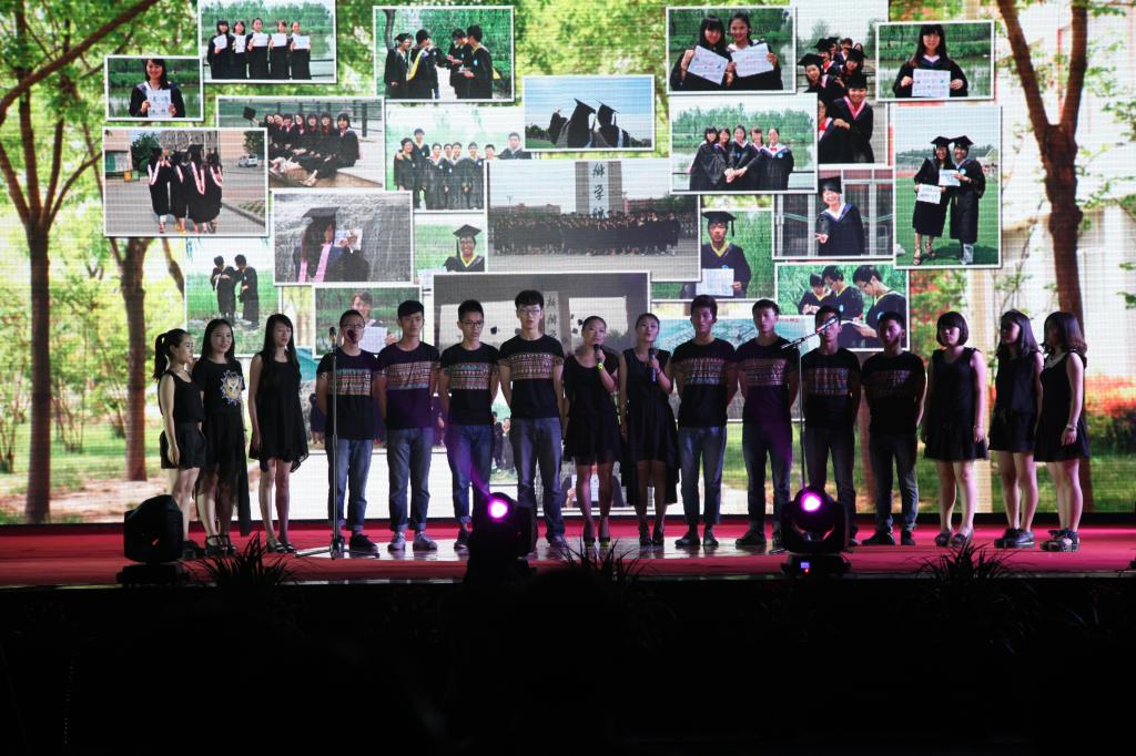 随后,我校精心准备的“致青春”大型主题毕业晚会以全新的构思、视角及全体演员的精彩表演向毕业生展示了一场视听盛宴。节目精彩纷呈,采用倒叙、追忆、写实、抒情的手法,全方位、立体的展现了我校学子四年求学路上的点点滴滴,引起毕业生的极大共鸣,动情处,许多学生更是潸然泪下。整场晚会在LED大屏幕的配合下,主题鲜明,行云流水般用动感诠释了青春的活力,将大学美丽的青春生活在这一刻定格,赢得了领导及广大师生的一致好评。晚会结束后,校领导亲切接见了全体演职人员并合影留念。