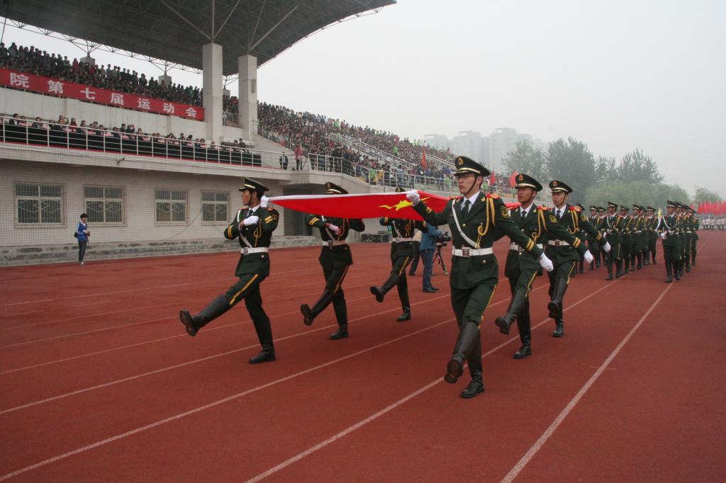 伴随着解说,国旗方阵、会旗方阵、红旗方阵、鲜花方阵、青年志愿者方阵、裁判员代表队、教职工代表队和十九个院系的代表队依次入场。他们用最洋溢的热情,展现出我校师生良好的精神风貌。