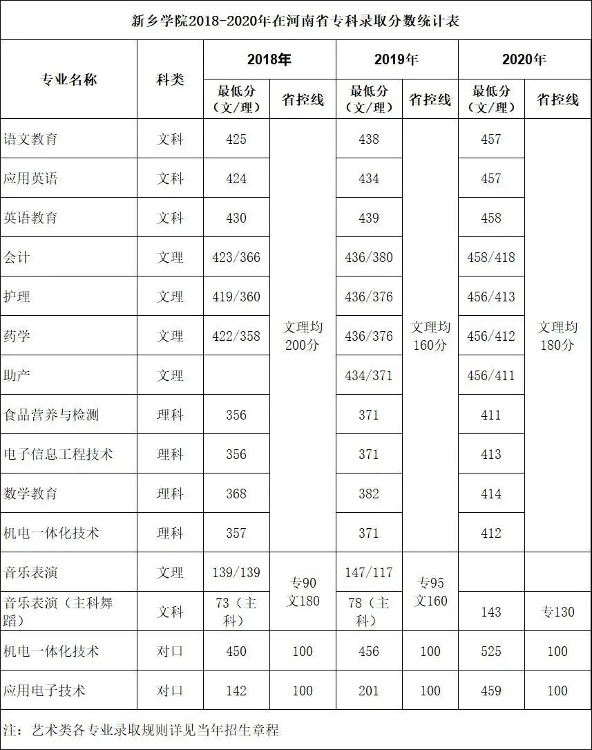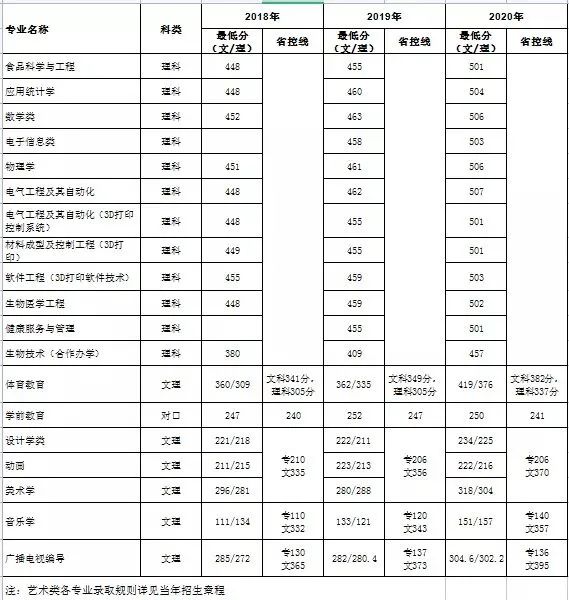 2018-2020专科录取分数线