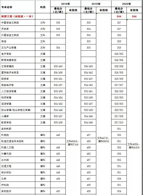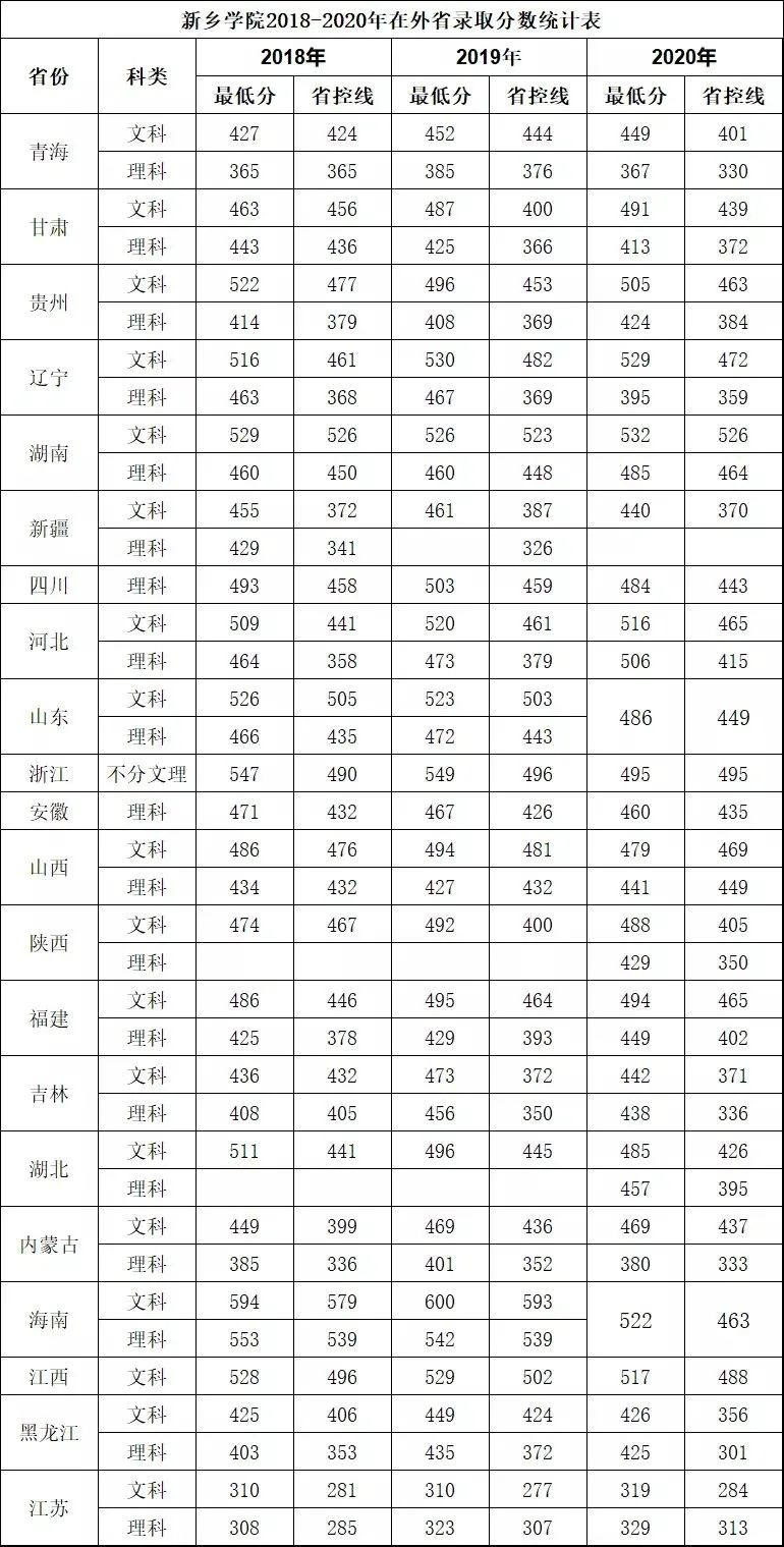 2018-2020年外省录取分数线