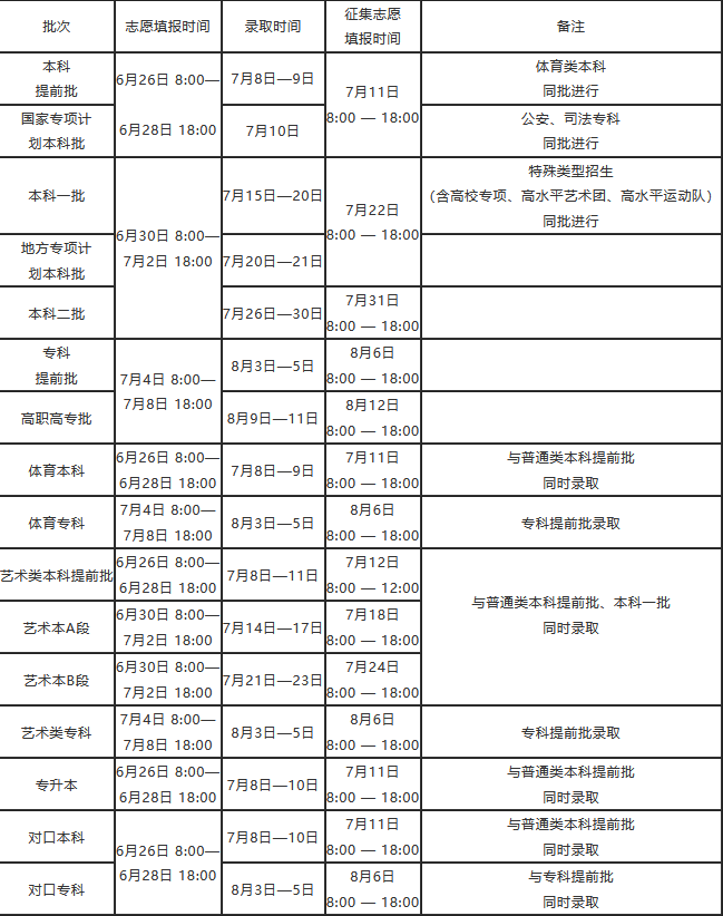 河南省2021年普通高校招生志愿填报及录取时间安排
