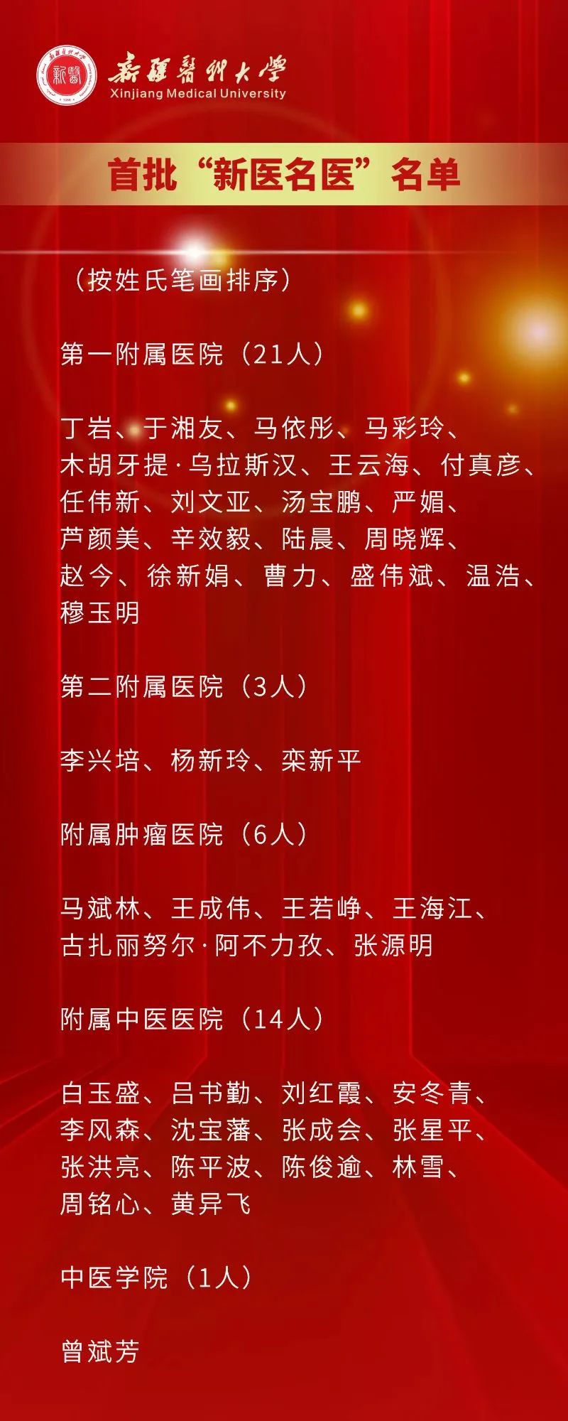为进一步加大医学人才培养力度,激发广大医务工作者的积极性和创造性,营造全校尊医重卫的良好氛围,学校组织开展了首批“新医名医”评选工作。经个人申报、专家评议、公示、单位推荐、学校资格审核、学校党委常委会研究,决定授予丁岩等45名同志“新医名医”称号。