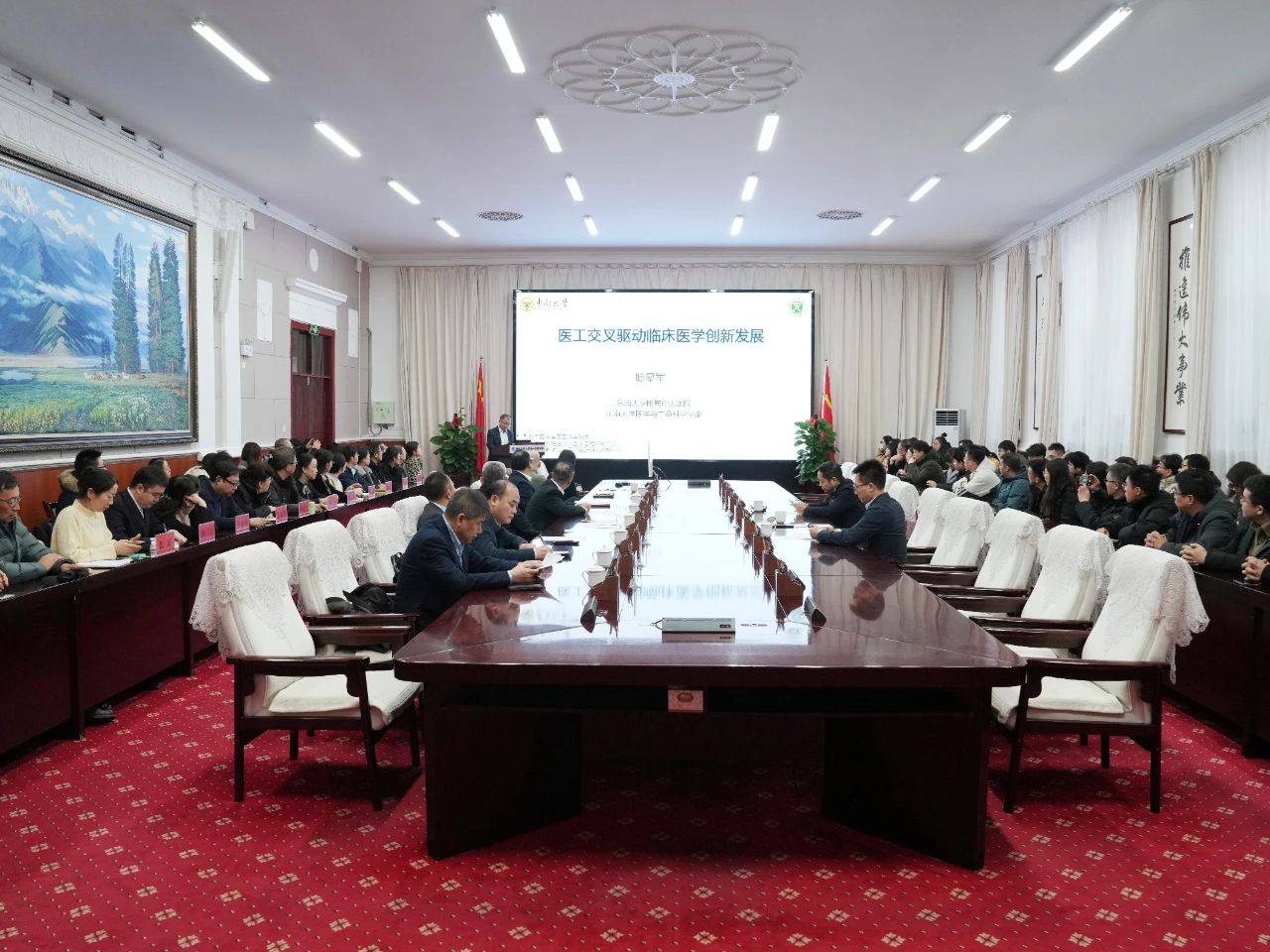 东南大学附属中大医院院长助理祁小龙、上海交通大学医学院附属瑞金医院教授王忠敏,新疆医科大学党委副书记孙红新和我校人事处、科技处、基础医学院、医学工程技术学院、第一附属医院的有关负责人参加了座谈。