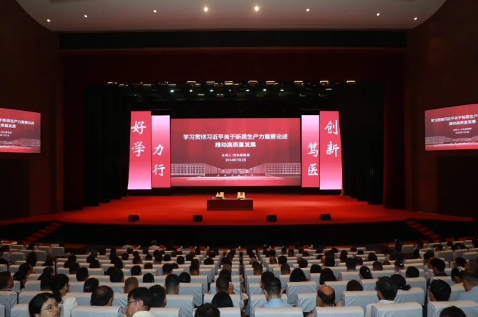 7月3日下午,《新医大讲堂》第七讲开讲,我校邀请到中央马克思主义理论研究和建设工程首席专家、我校“双聘教授”、兰州大学马克思主义学院刘先春教授,在雪莲山校区文创中心礼堂为广大师生作了题为《学习贯彻习近平关于新质生产力重要论述 推动高质量发展》的专题辅导报告。